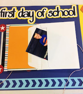 Last Wednesday, we reposted a video from Troom Troom on our DML Facebook page that showed how to make an expandable mini-album with pockets as a travel journal. You can see it here. It used minimal product, was useful, and was super cute! And it got me thinking...could I use this idea in a scrapbook layout? Happily, the answer is YES! and I had the perfect kit to try it out on! I love the First/Last Day of School layout, but I definitely took more than just a couple photos on the first day of school. This mini album allowed me to use ALL of my photos! I didn't have to leave any out! Below, I've outlined the steps to make a simple, expandable, accordion-style mini album that you can display on its own or, as I did, add it to a scrapbook layout. I would recommend watching the short video to get a quick idea of how it works, and then come back here to follow the step by step and see how we used it in a layout. Happy Crafting!